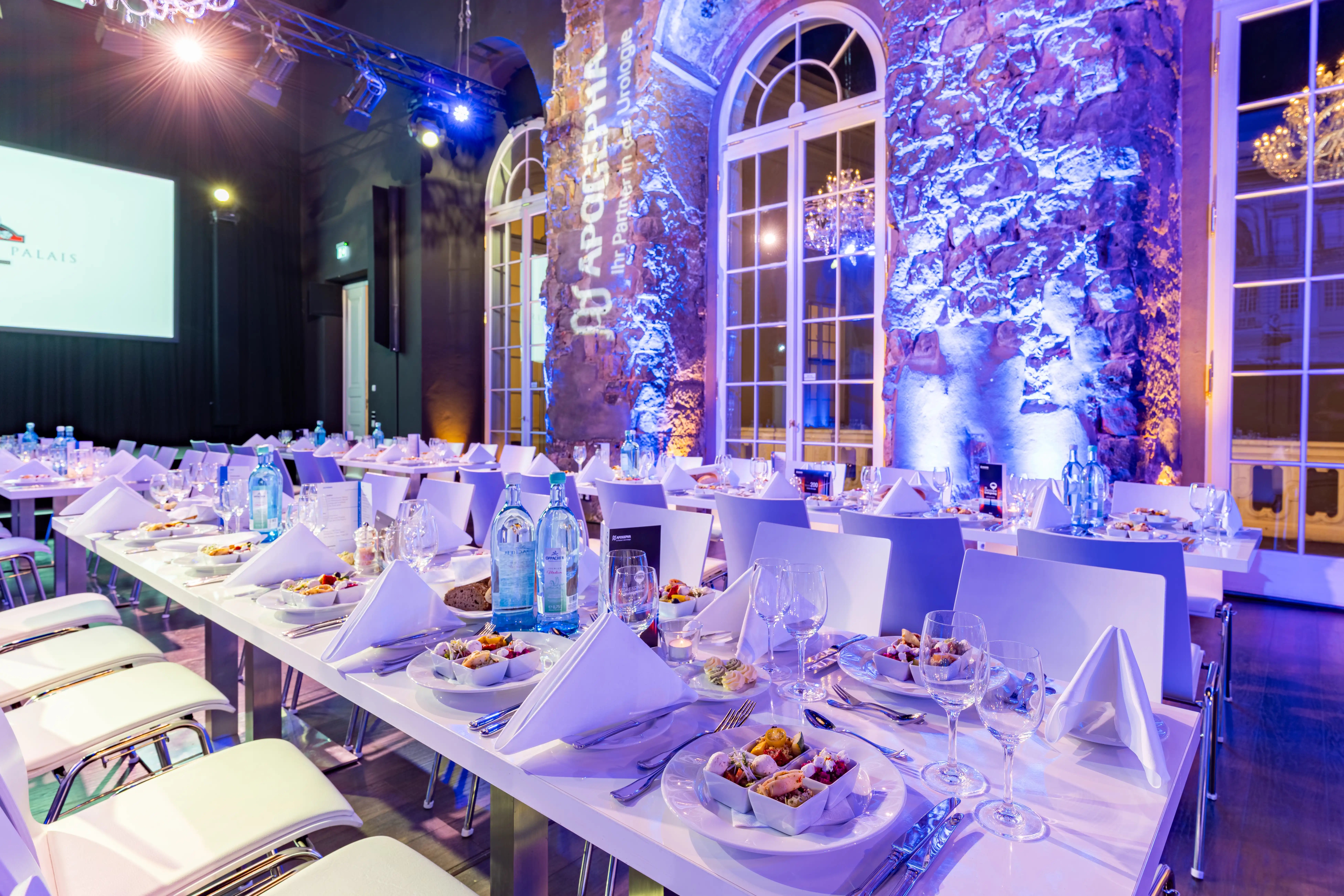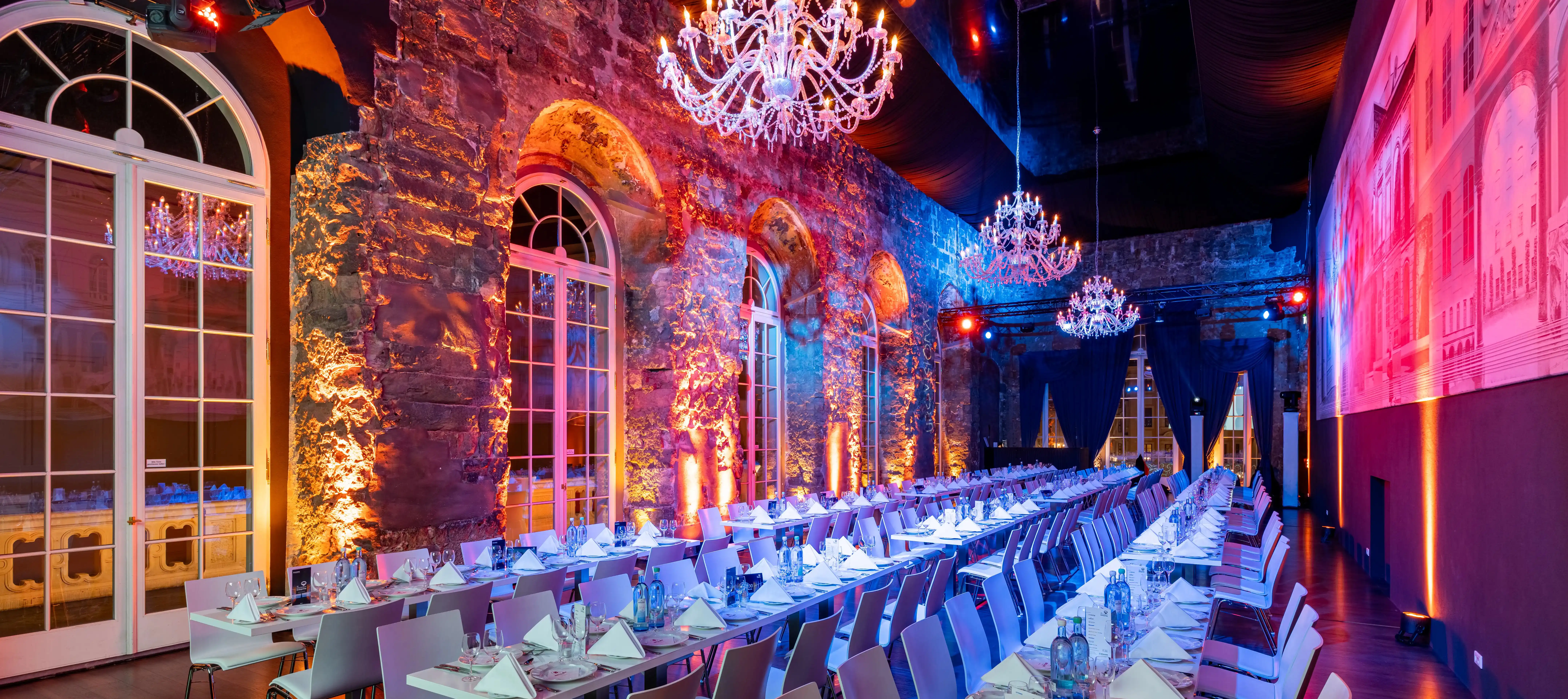 Das Kurländer Palais in Dresden verbindet historische Eleganz mit moderner Architektur. Teile des originalen Rokoko-Stils, wie Sandsteinwände und der imposante Treppenaufgang, sind erhalten. Im Inneren ergänzen Kronleuchter den klassischen Charme. Das Palais ist eine besondere Eventlocation, die Geschichte und Gegenwart stilvoll vereint.