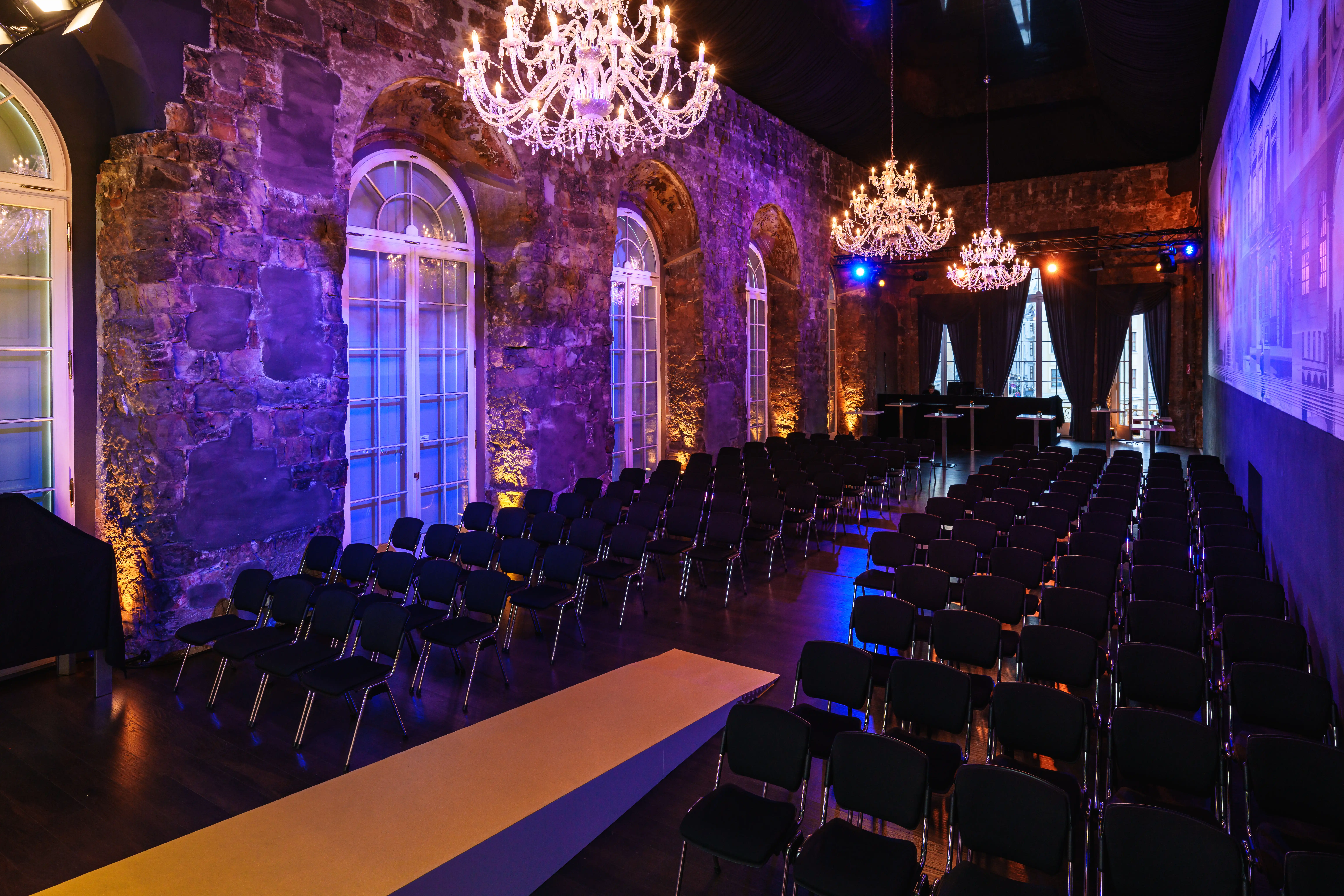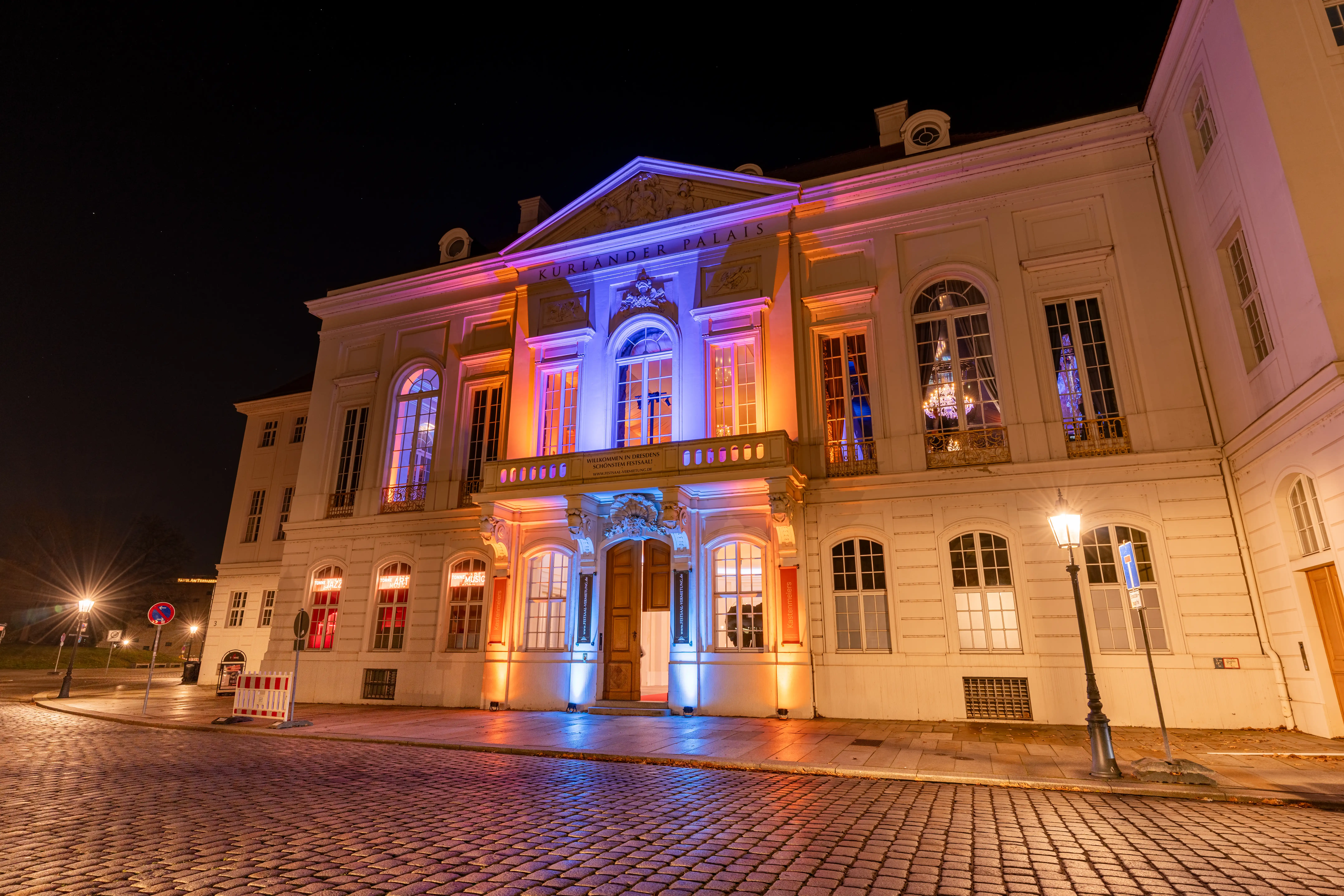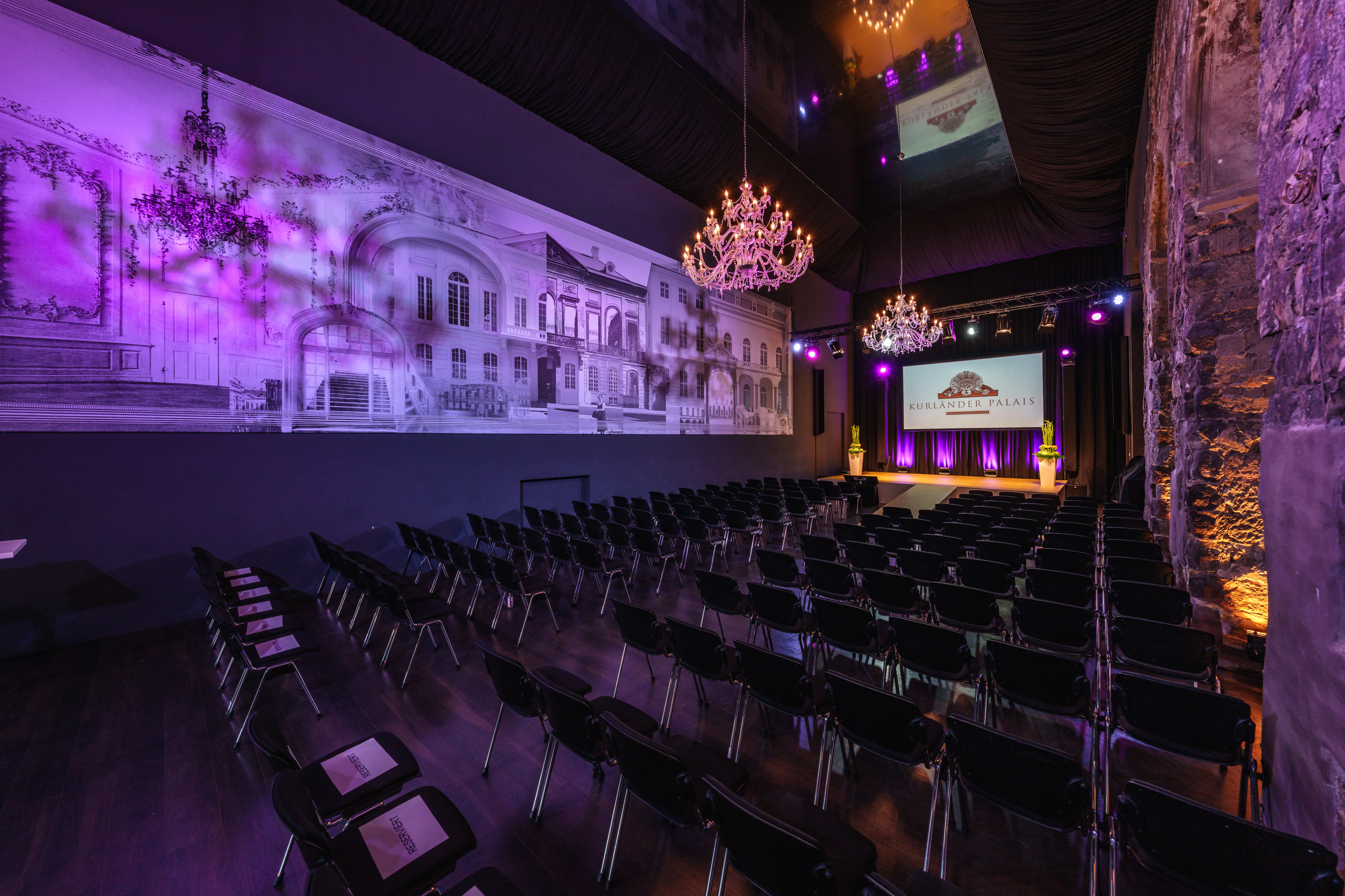 Das Kurländer Palais bietet ganzjährig flexible Eventflächen auf zwei Etagen. Der obere Festsaal umfasst 350 m² mit elegantem Vorraum und 10 Meter Deckenhöhe. Optional kann der untere Bereich mit drei weiteren Räumen (300 m²) gemietet werden. Innenhof und 15 Meter langer Balkon am Festsaal schaffen eine besondere Atmosphäre für stilvolle Veranstaltungen.